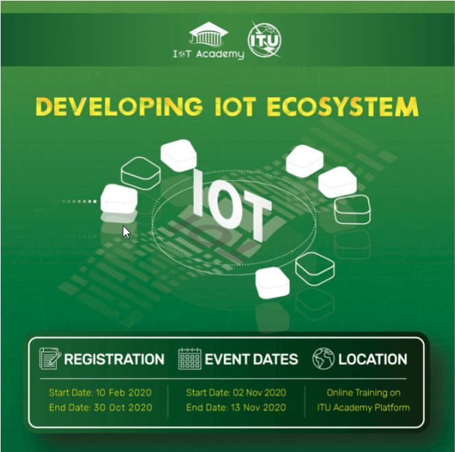 Internet of Things will form a key component that will enable the 4th industrial revolution. This online training course aims to introduce participants to the Internet of Things ecosystem and its key components including acquisition (Sensors & Actuators, embedded Systems, Gateways), network (Device Connectivity), IoT platform (Analytics, Dashboards & Tools, services), and business (IoT Applications and Services, IoT Verticals, Marketplaces). The training will take into account policies and regulations related to the Internet of Things and its security aspects. It will specifically focus on some IoT verticals and cover all elements described above for them.
